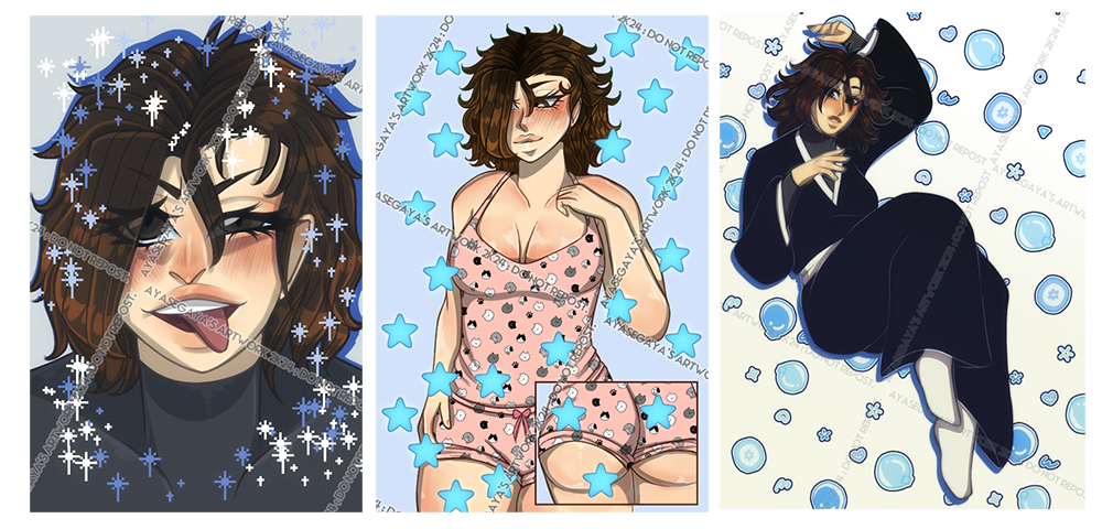 ✧ my style is more on the anime, visual novel side as i am a huge anime and manga fan, with my art be inspired by the creators of BLEACH, black butler, nana and fullmetal alchemist. i also do enjoy comic books and cartoons.